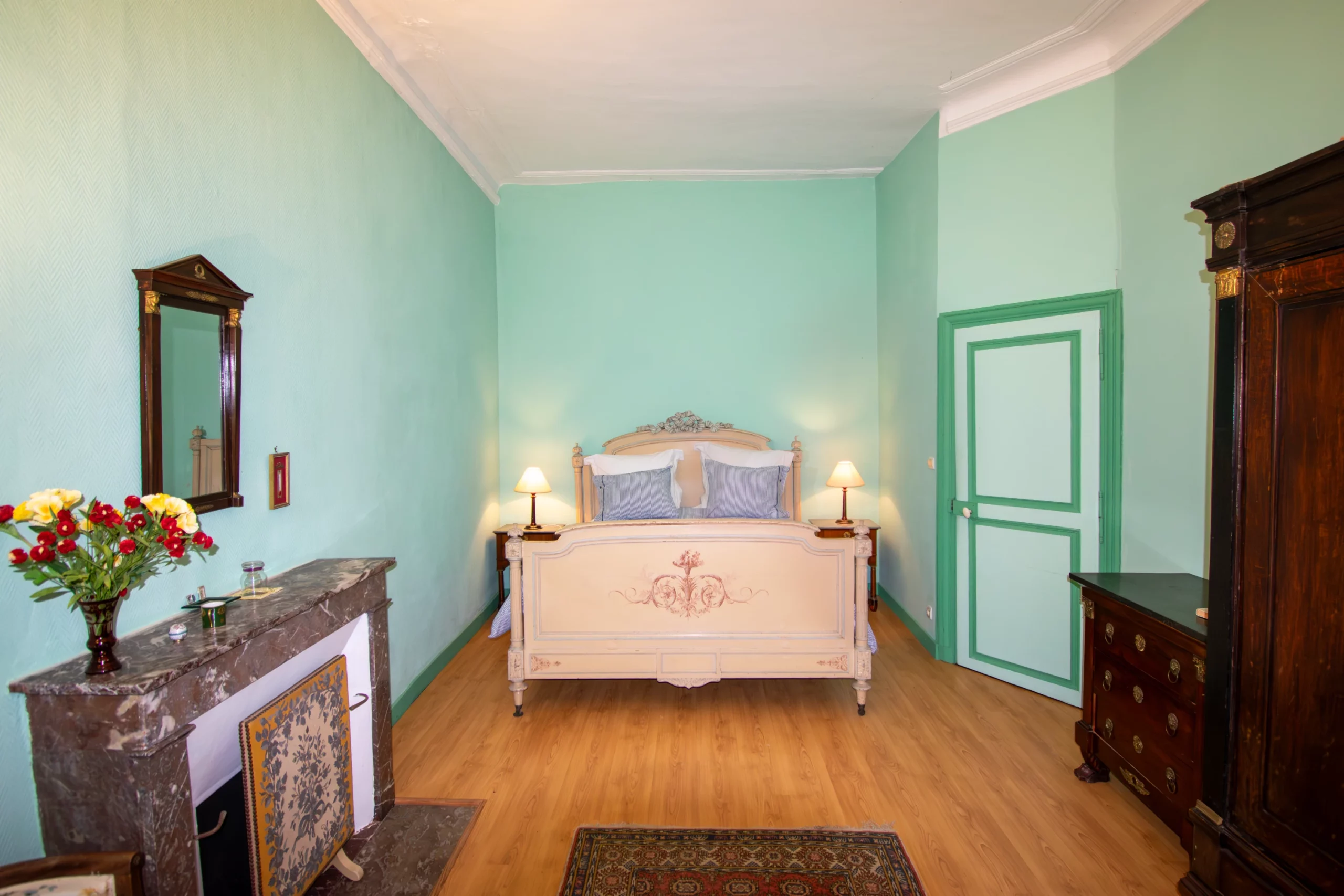 This 20m² double room overlooks the front garden of the house and the views of the estate and is located above the Grand Salon :